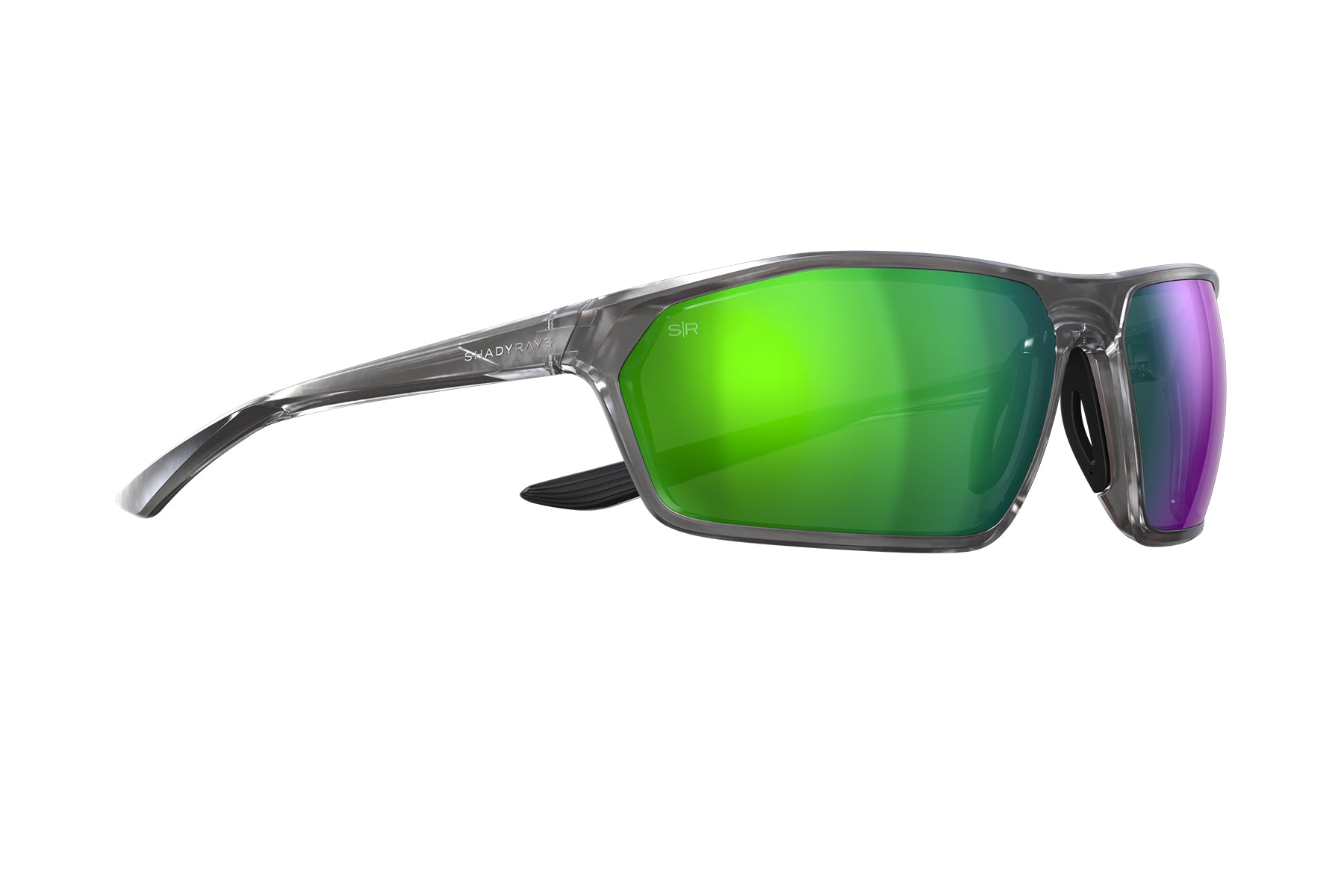 Lightweight sport wraparound design with flush mount lenses for full peripheral vision and unobstructed views.