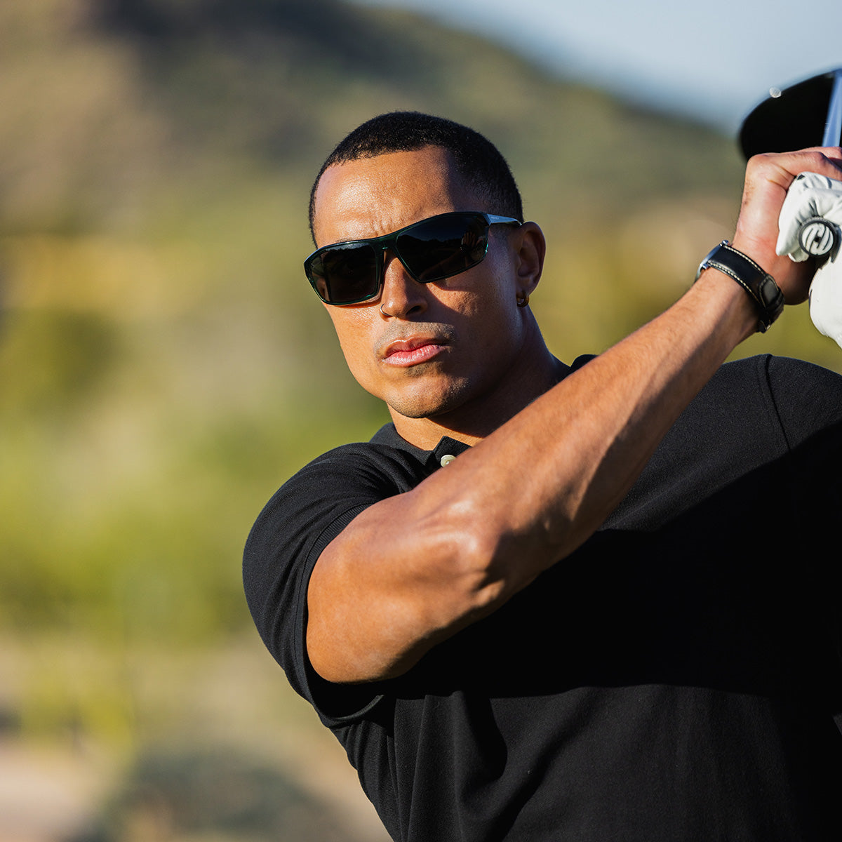 Strong but flexible TR90 material made to withstand wear and tear of the golf course.