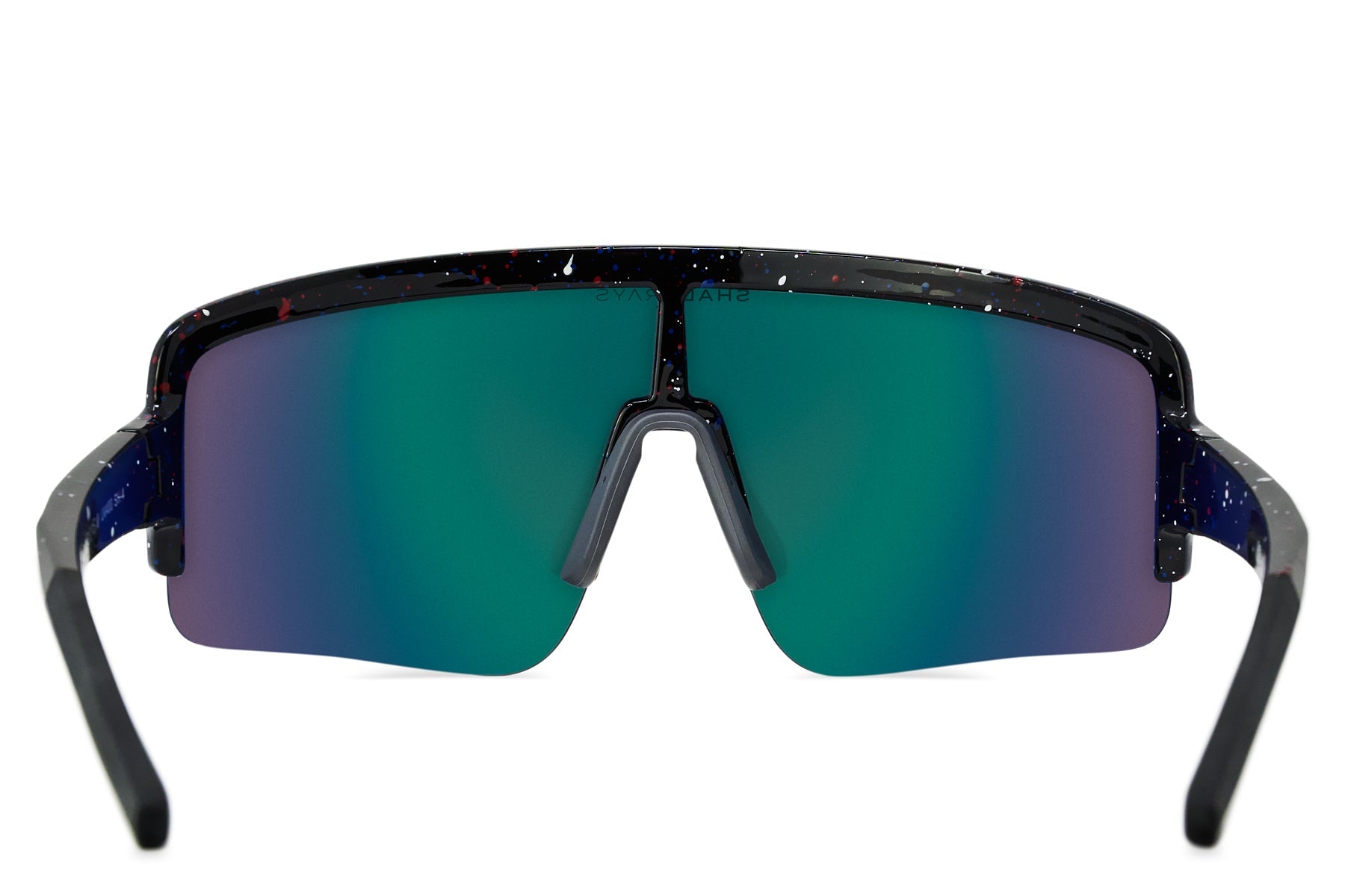 Durable matte black frame with red, white, and blue splatter paint unique to each pair
