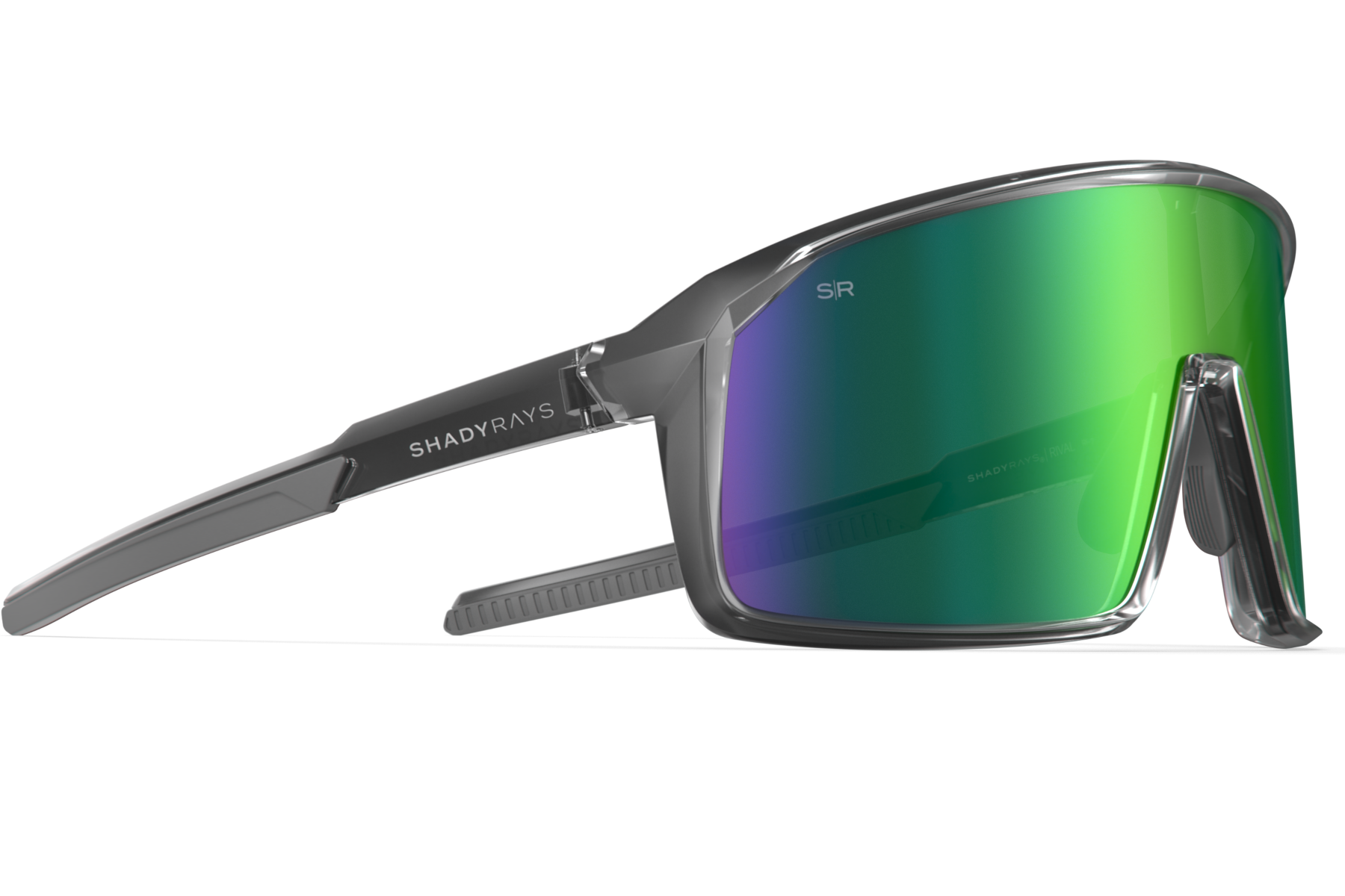 Single lens design for a panoramic view. Premium Polarized Emerald Green mirrored lenses with gray tint: 100% UV protection / shatter-resistant /anti-scratch/ salt water resistant/hydrophobic