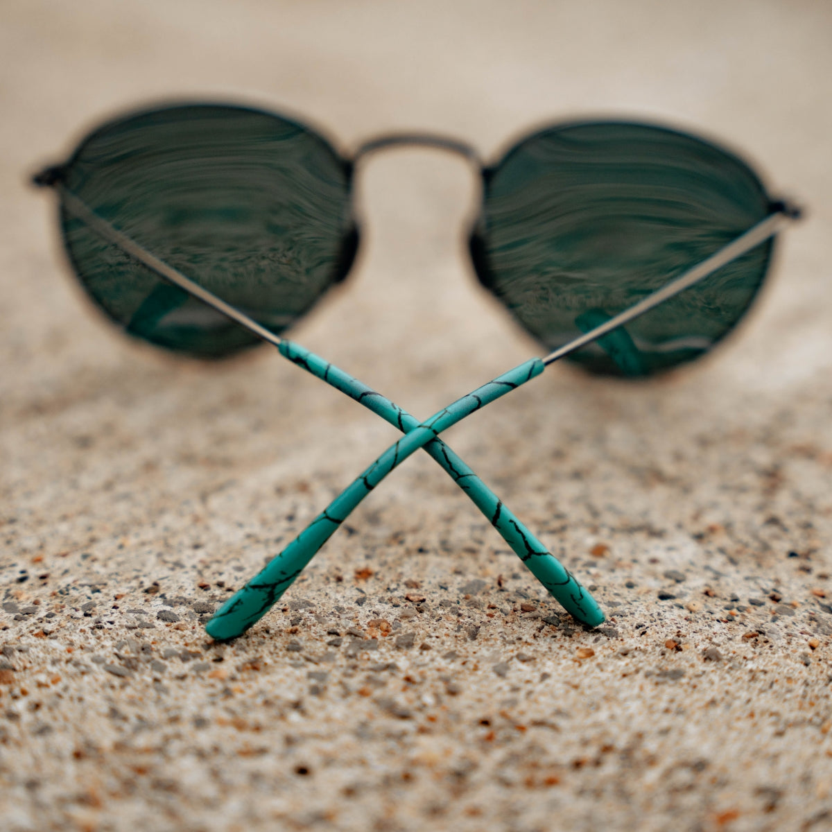 Antique Silver Metal frame with vibrant turquoise temple tips