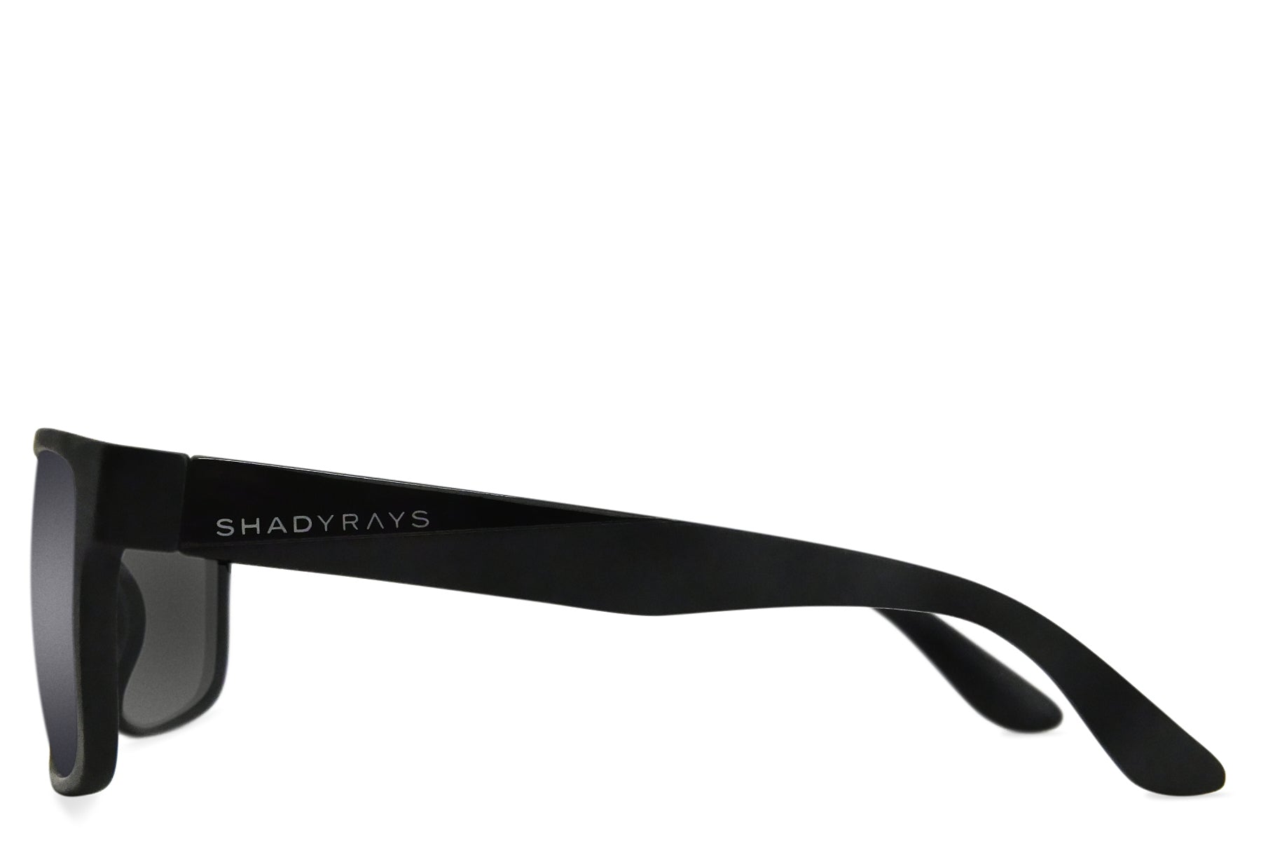 Matte black TR-90 frame with interlocking hinges and inset metal Shady Rays logo