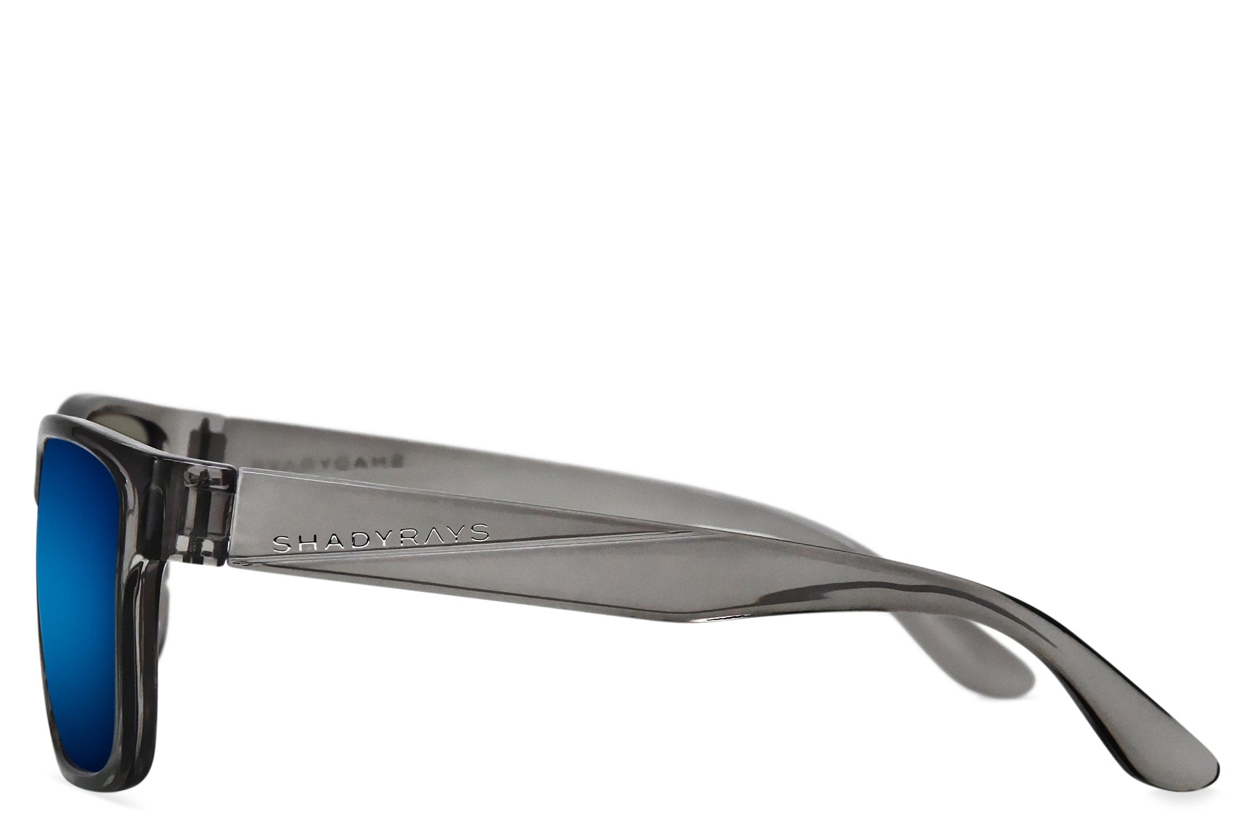 Transparent grey gloss frame with interlocking hinges and inset metal Shady Rays logo