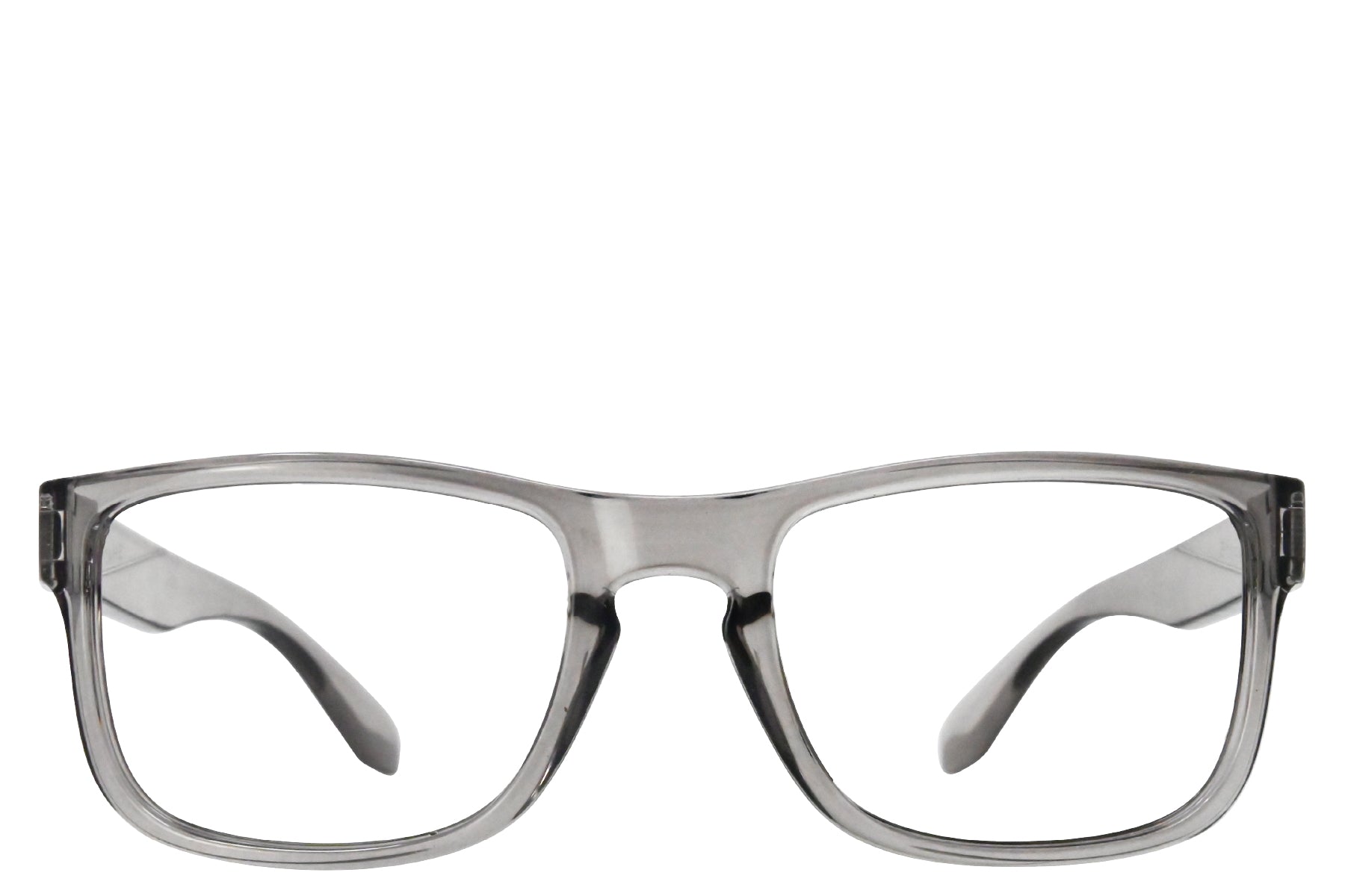 Transparent gloss smoke grey TR-90 frame with interlocking 3 barrel hinges for maximum durability